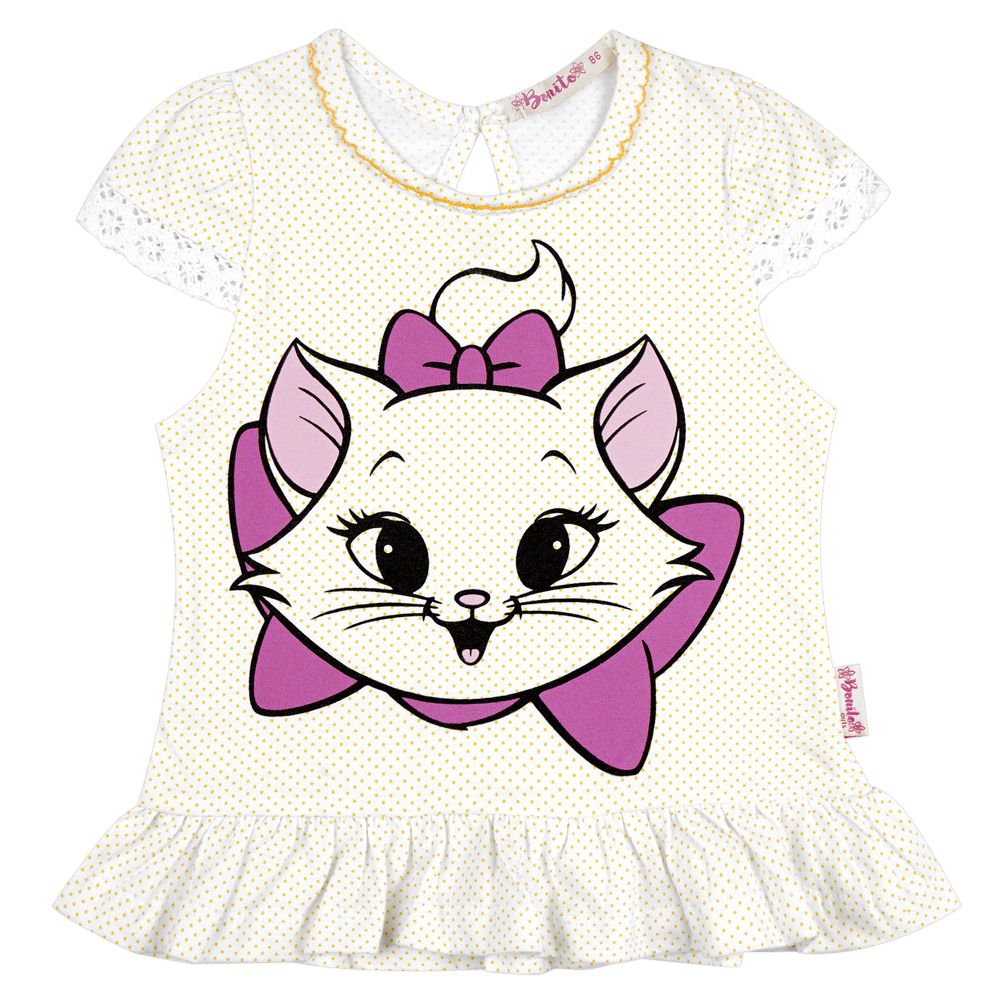 Футболка для девочки Bonito Kids (BK759K), Белый/Жёлтый/Кошка, 086-92 см, в упаковке 1 шт. 176 руб/упак.