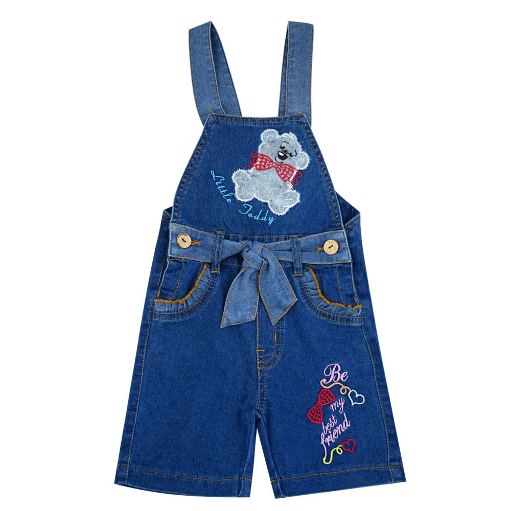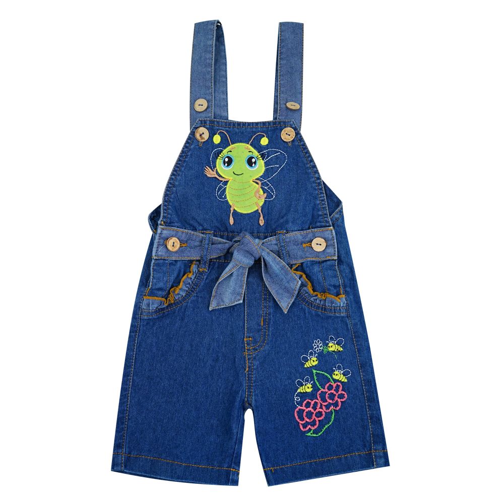 Полукомбинезон для девочки Bonito Kids (OP773П), Джинс/Мишутка, 092 см, в упаковке 1 шт. 470 руб/упак.
