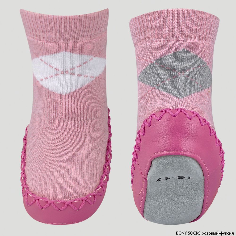 Носки-мокасины детские махровые Mocc Bony, Bony Socks, розовый/фуксия, Серо-Голубой/Фиолетовый, 16-17 р, в упаковке 1 шт. |