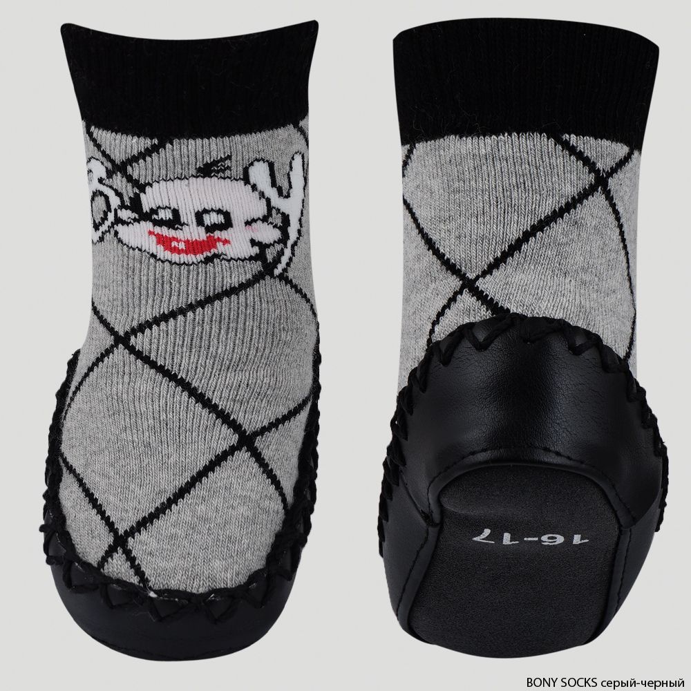 Mocc Bony махровые Bony Socks (носки-мокасины детские)/Серый/Черный (цвет Серый/Черный, размер 16-17 размер, 0-6 месяцев)