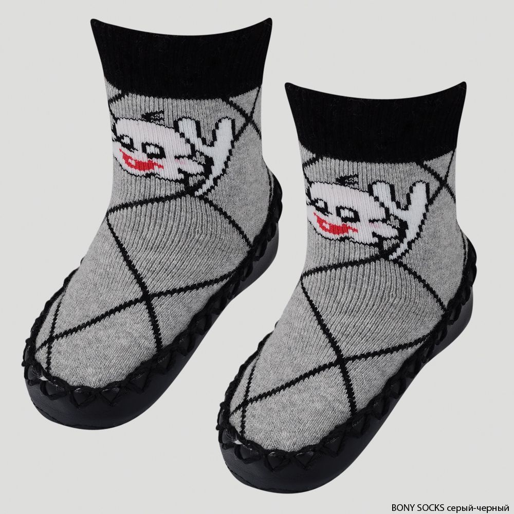 Носки-мокасины детские махровые Mocc Bony, Bony Socks, серый/черный, Серый/Черный, 16-17 р, в упаковке 1 шт. |