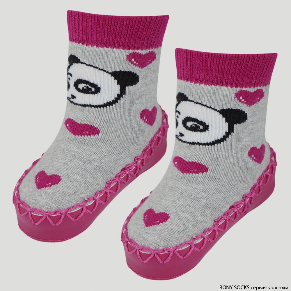 Носки-мокасины детские махровые Mocc Bony, Bony Socks, серый/красный, Сиреневый/Розовый, 16-17 р, в упаковке 1 шт. |