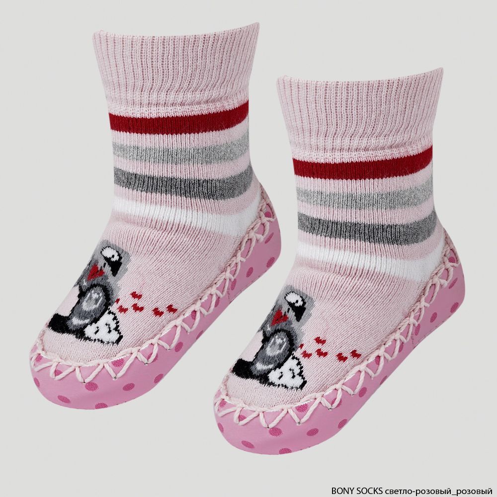 Носки-мокасины детские махровые Mocc Bony, Bony Socks, светло-розовый/розовый, Сиреневый/Розовый, 16-17 р, в упаковке 1 шт. |
