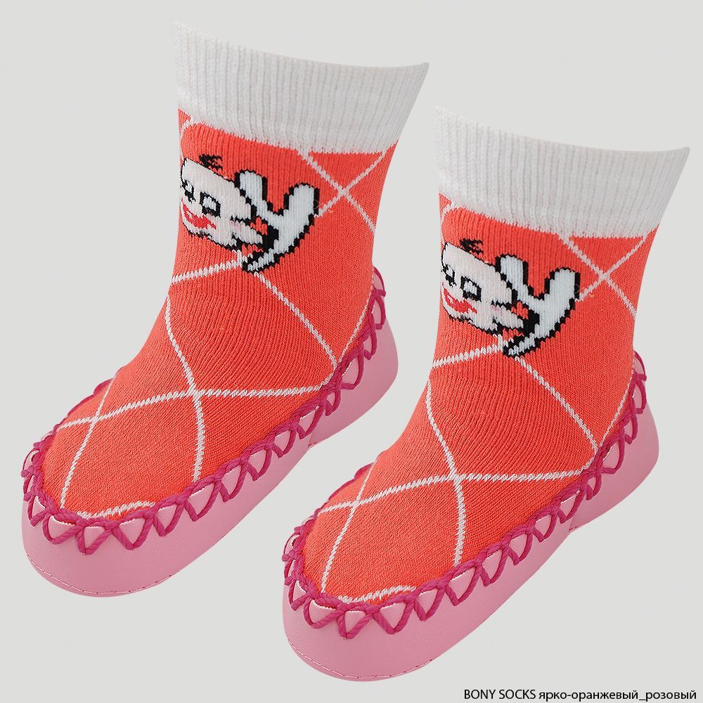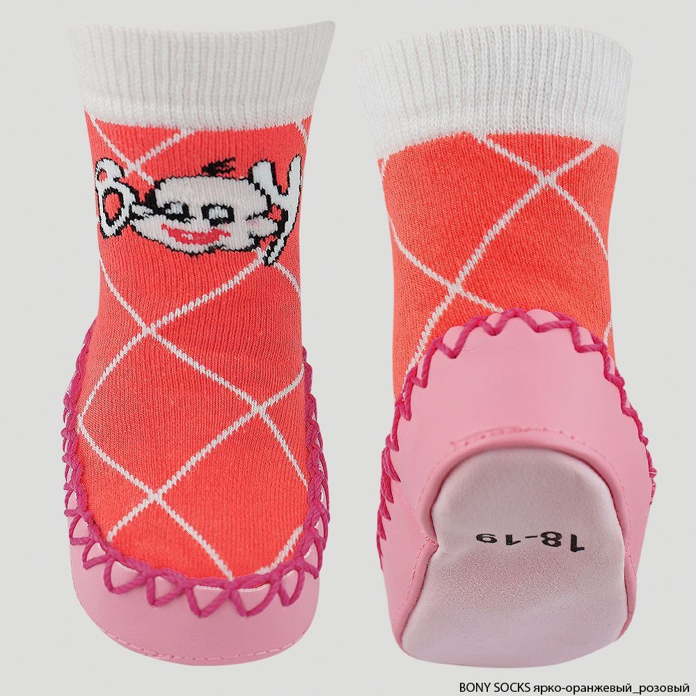 Носки-мокасины детские махровые Mocc Bony, Bony Socks, ярко-оранжевый/розовый, Белый/Белый, 16-17 р, в упаковке 1 шт. |