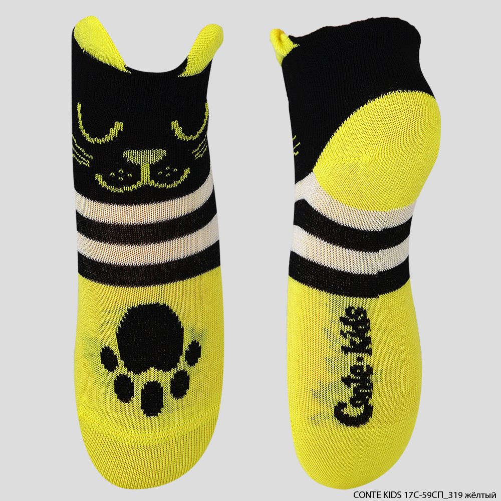 Носки детские Tip-Top с мордочками, Conte kids (17С-59СП) желтый, Черный (№604), 22 см, в упаковке 3 шт. |