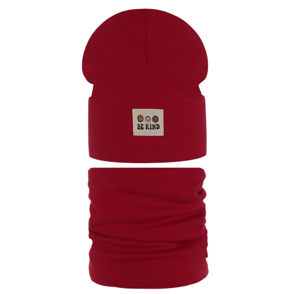 Шапка+снуд детский двухслойный Grandcaps (GC-ITN9/1) ярко-красный, в упаковке 1 шт.
