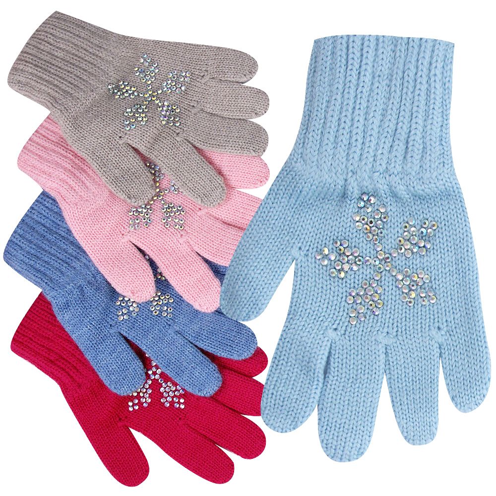 Однотоные перчатки, нежных пастельных цветов для девочки. Связанные из шерсти тонкорунного мериноса. Украшены аппликацией в виде снежинки из страз.