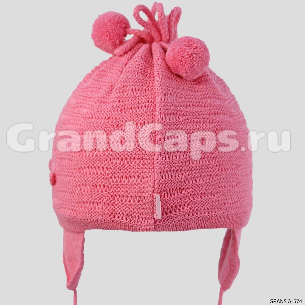 Комплект для девочки с помпонами, оформлен декоративными цветочками, на завязках.