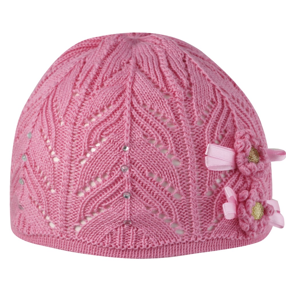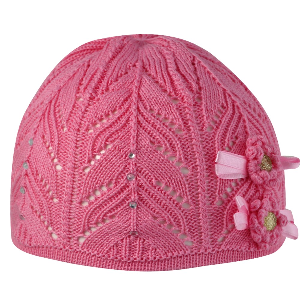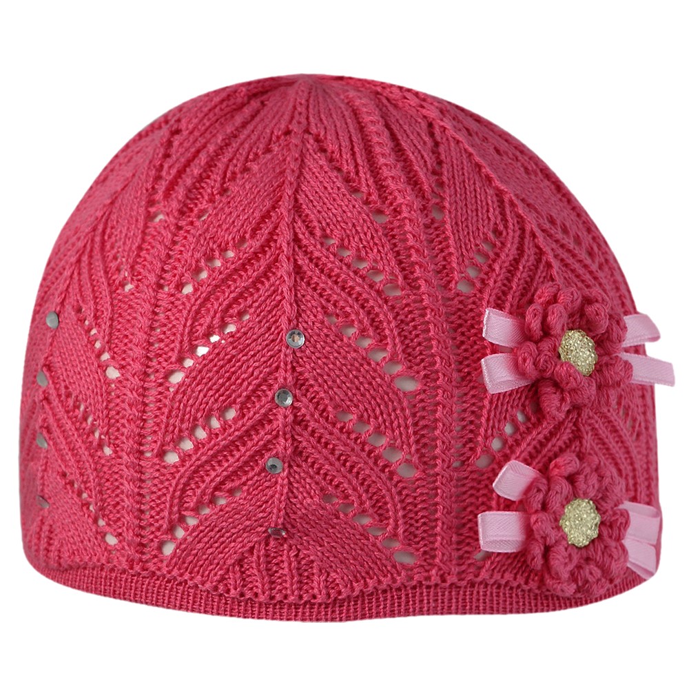 Шапка для девочки с декоративным цветком.