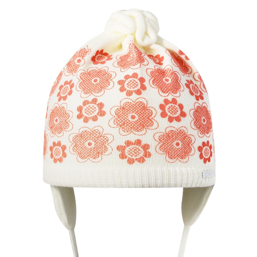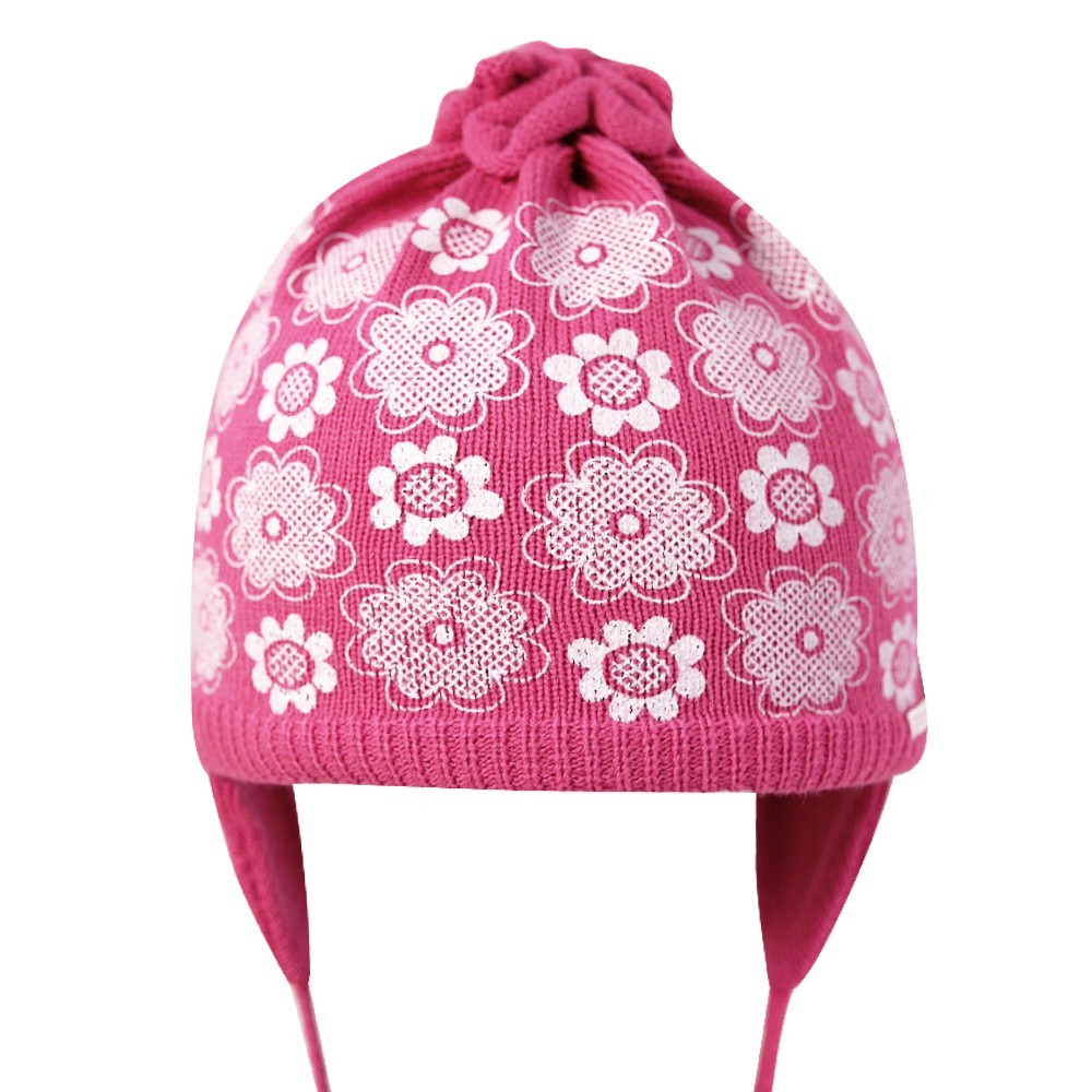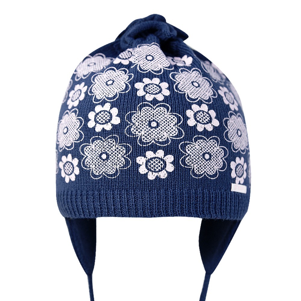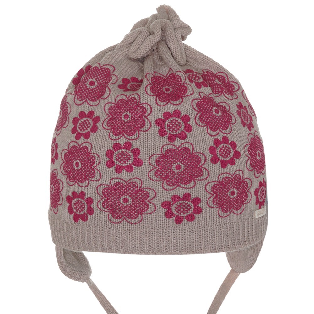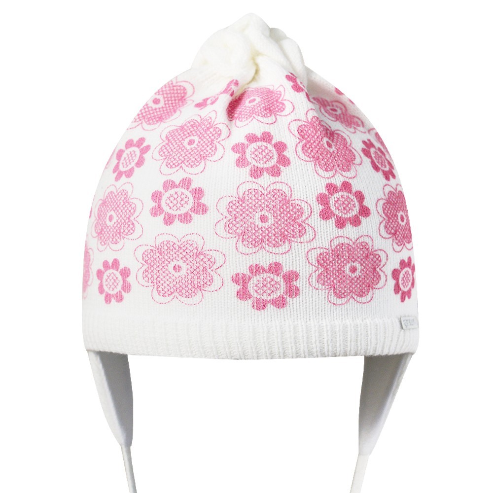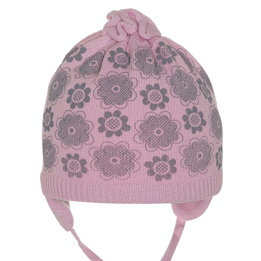 Шапка для девочки с цветочным принтом, на завязках.