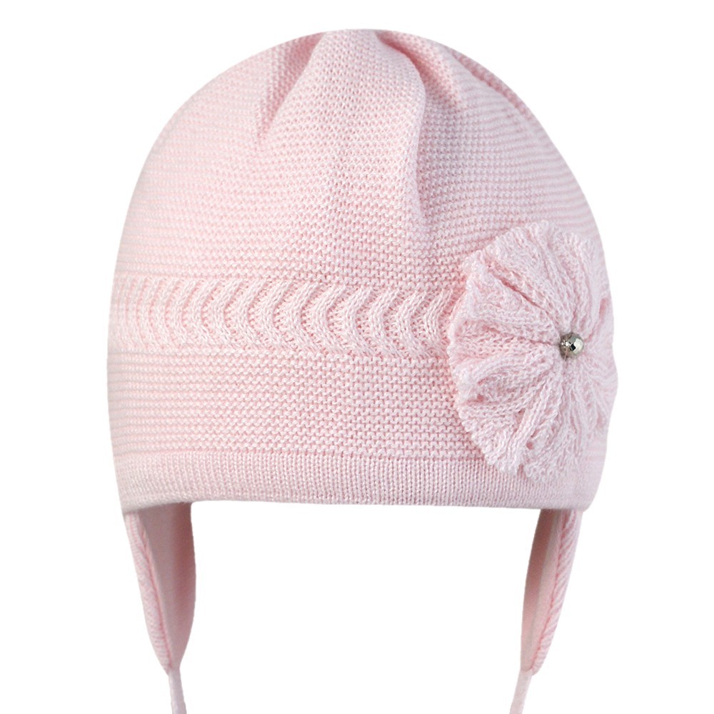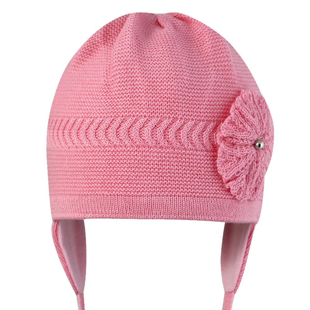 Шапка для девочки с декоративным большим цветком, на завязках.