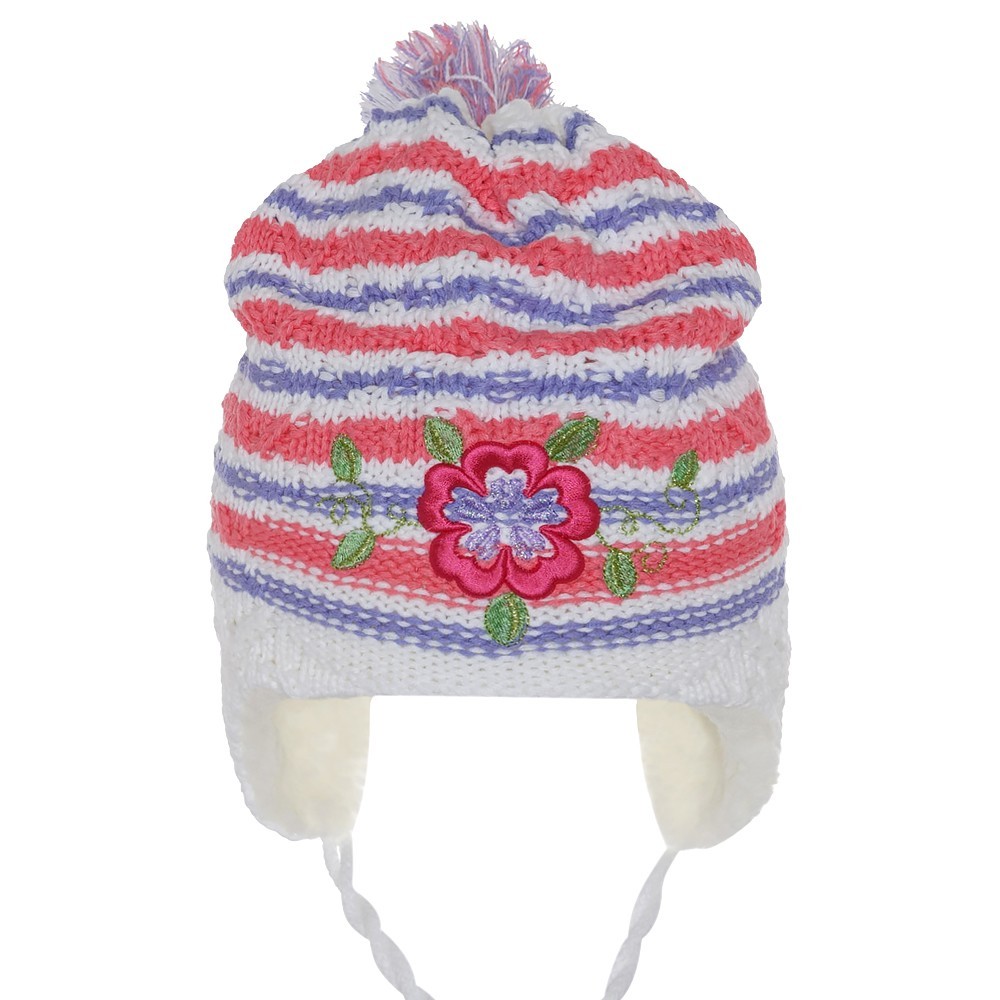 Очень теплая шапка на зиму для девочки, с красивой вышивкой и ниточным помпоном, на завязках. Подкладка мягкий искусственный мех.