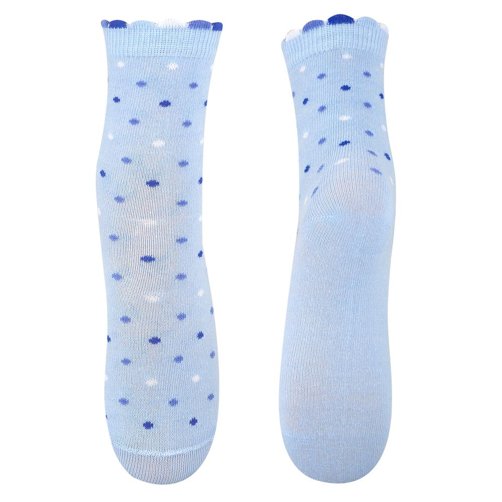 Детские носки из смесовой пряжи с добавлением прочной эластановой нити. Отличаются двойным разноцветным бортом с рюшкой "пикот" и кеттельным швом на мыске. Большое содержание хлопка в составе гарантирует комфортный микроклимат, а искусственные волокна - хорошее прилегание и износостойкость. Модель примечательна вывязанным по всему изделию принтом "горошек".