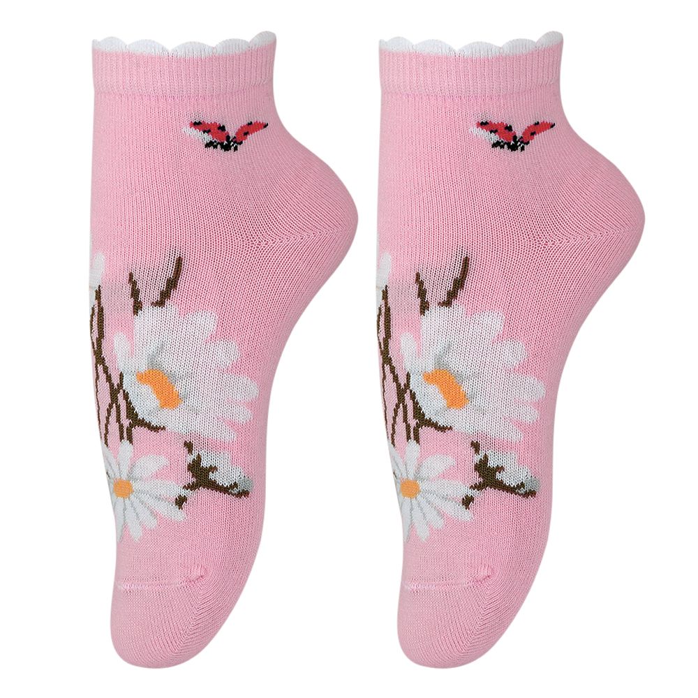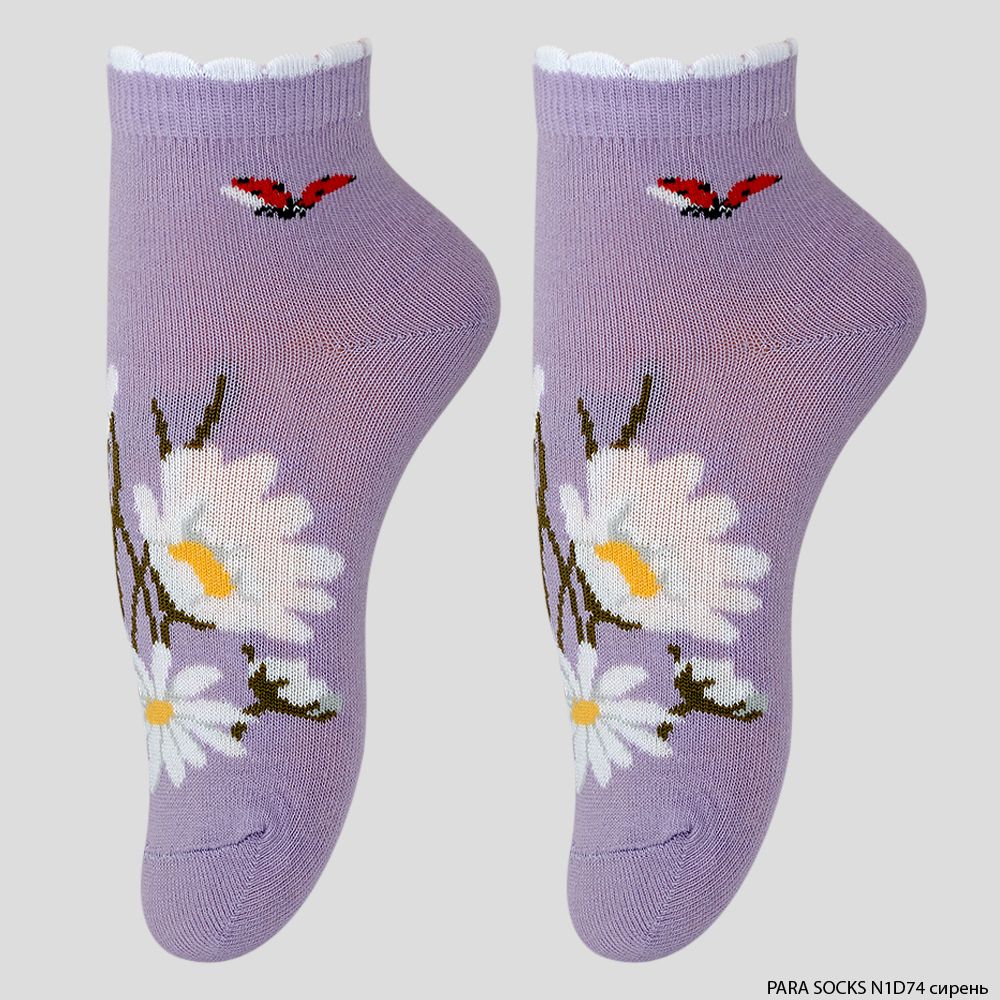 Детские носки из смесовой пряжи с добавлением прочной эластановой нити. Большое содержание хлопка в составе гарантирует комфортный микроклимат, а искусственные волокна - хорошее прилегание и износостойкость. Модель примечательна вывязанным крупным принтом "Ромашки".