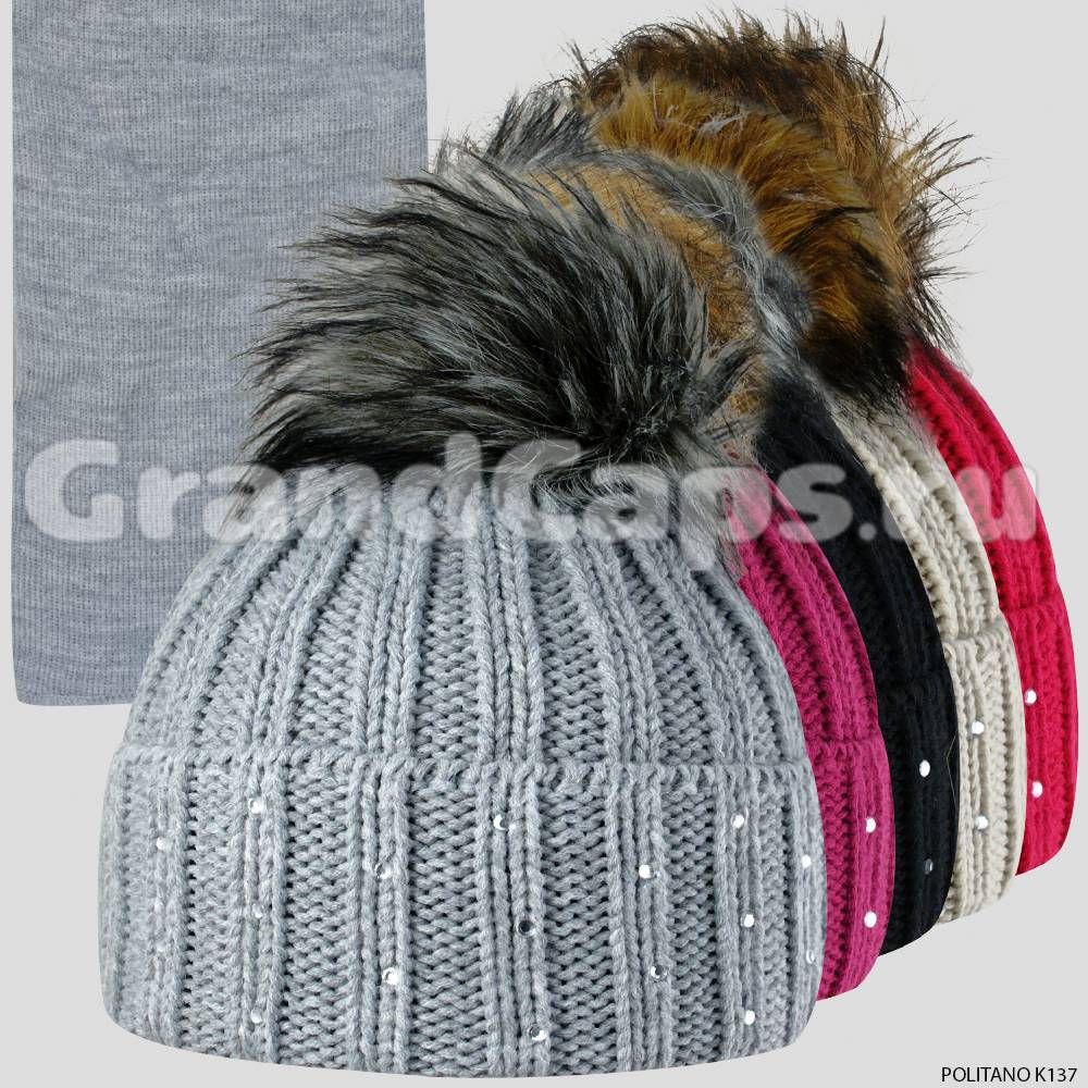 Комплект для девочки. Шапка с отворотом украшеная стразами, на макушке помпон из искусственного меха.